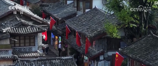 云南麗江:古城青磚黛瓦 國旗迎風飄揚
