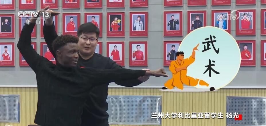 蘭州大學(xué)國(guó)際文化交流學(xué)院 利比里亞留學(xué)生 楊光:我已經(jīng)學(xué)中文一年半了,我喜歡中文,最喜歡武術(shù),我喜歡看很多中國(guó)的電影,特別是成龍的電影,因?yàn)樗膭?dòng)作很多。