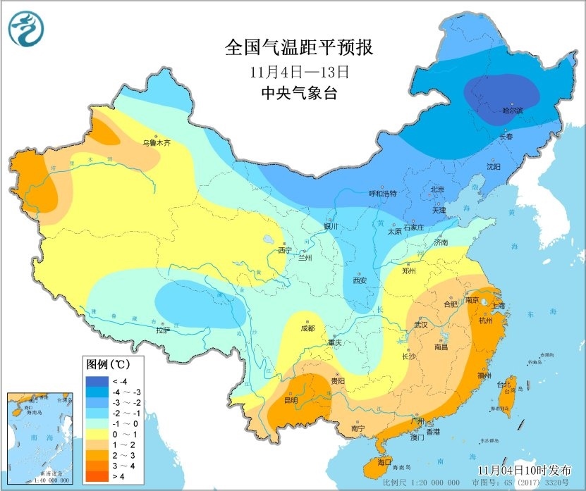 未來(lái)10天(11月4-13日),東北大部地區(qū)累計(jì)降水量有10~20毫米,東部部分地區(qū)有30~60毫米;江淮、江南、華南西部和北部等地累計(jì)降水量有20~60毫米,局地超過(guò)90毫米;上述大部地區(qū)累計(jì)降水量較常年同期偏多5成至1倍。