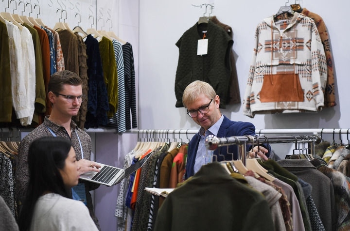10月31日,外國(guó)采購商在服裝展區(qū)參觀洽談。新華社記者 鄧華 攝