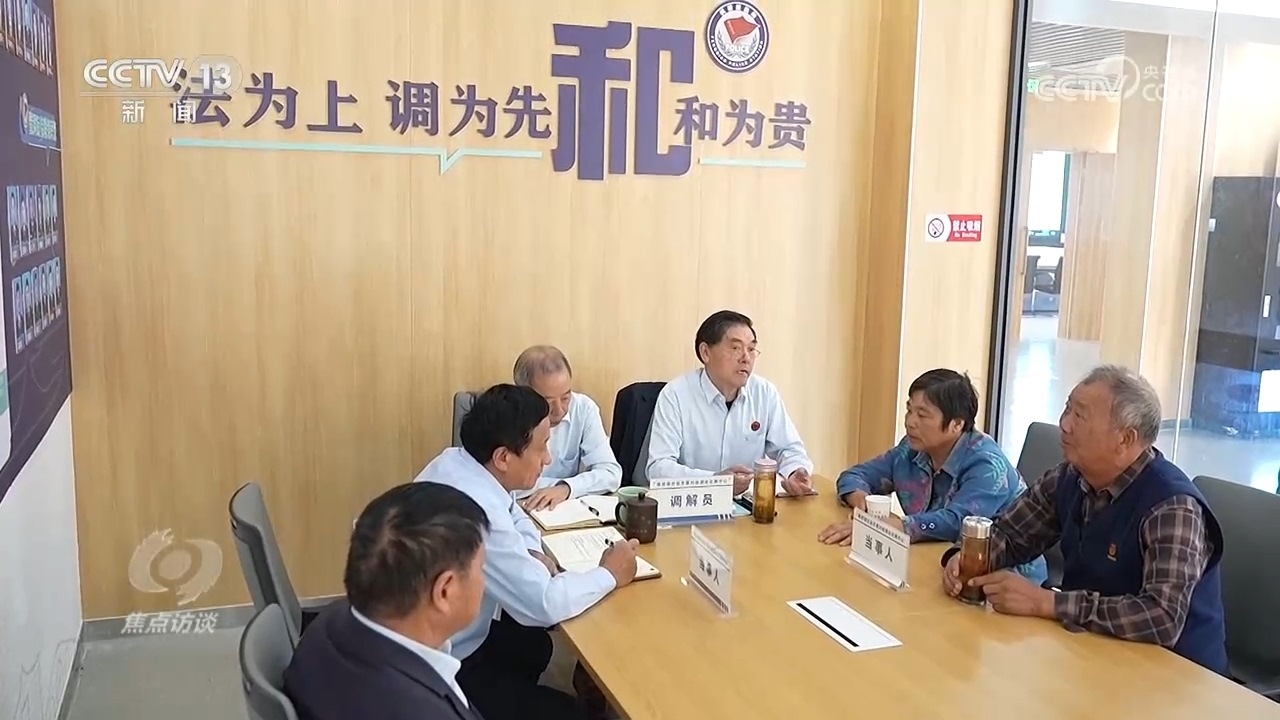 浙江省諸暨市楓橋鎮(zhèn)杜黃新村黨委書記、人民調(diào)解委員會(huì)主任王海軍:“村里一般的調(diào)解村兩委會(huì)以及村調(diào)委基本上就地解決,因?yàn)椤畻鳂蚪?jīng)驗(yàn)’矛盾不出村,所以我們一般在村里面解決。但是涉及到法律法規(guī)一塊或者有些老百姓在‘心結(jié)’上面解不開,我們就動(dòng)用共享法庭。”