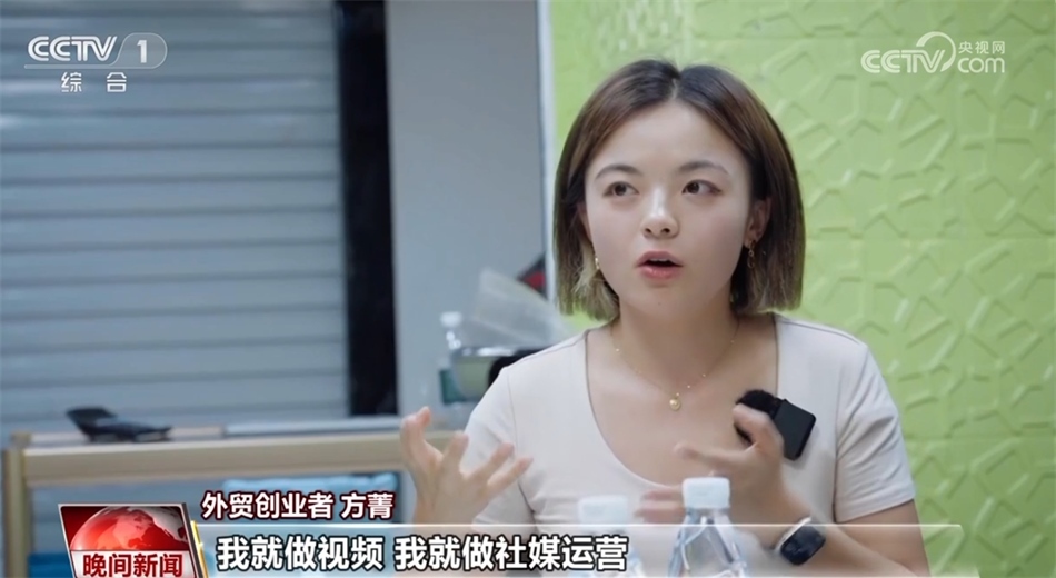 外貿(mào)創(chuàng)業(yè)者 方菁:我就做視頻,做社媒運(yùn)營。我加入(姐姐)的時候,她每個月只發(fā)一個集裝箱,但是我們來了之后,一個月發(fā)七個集裝箱了。