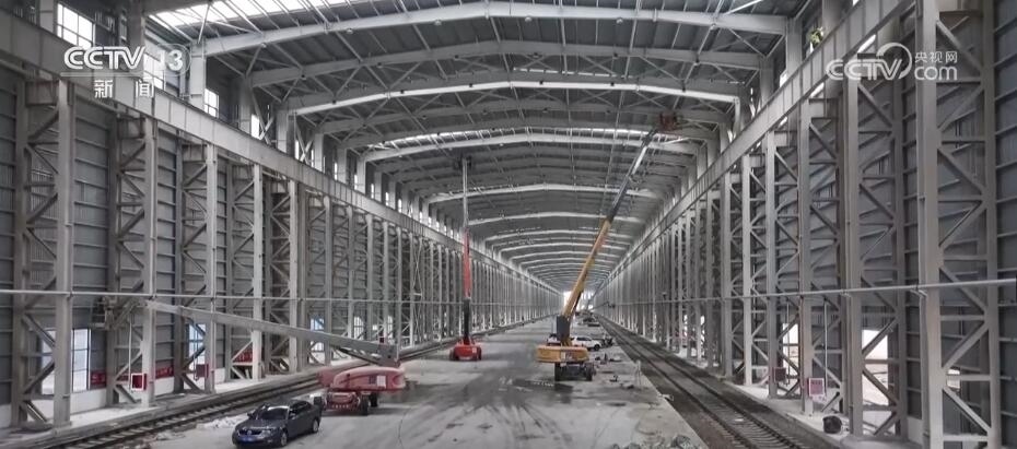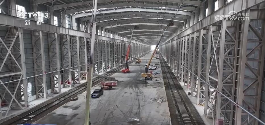 總臺(tái)記者 崔寧:在我的身后有一小一大、一舊一新兩座換裝庫(kù),它們主要是對(duì)入境的中歐班列進(jìn)行換裝。小的這座看起來(lái)也比較舊,它建于2008年,到目前為止已經(jīng)投用了整整15年。隨著“一帶一路”倡議的不斷推進(jìn),現(xiàn)在經(jīng)阿拉山口口岸出入境的中歐班列數(shù)量已經(jīng)由最初月均3.5列增加到日均17列。所以,它的存在也已經(jīng)遠(yuǎn)遠(yuǎn)不能滿足現(xiàn)在發(fā)展的需求,也正因?yàn)槿绱?,在它的旁邊又新建了一座大的換裝庫(kù),它建成投用之后將取而代之成為目前亞洲最大的室內(nèi)集裝箱換裝庫(kù)。