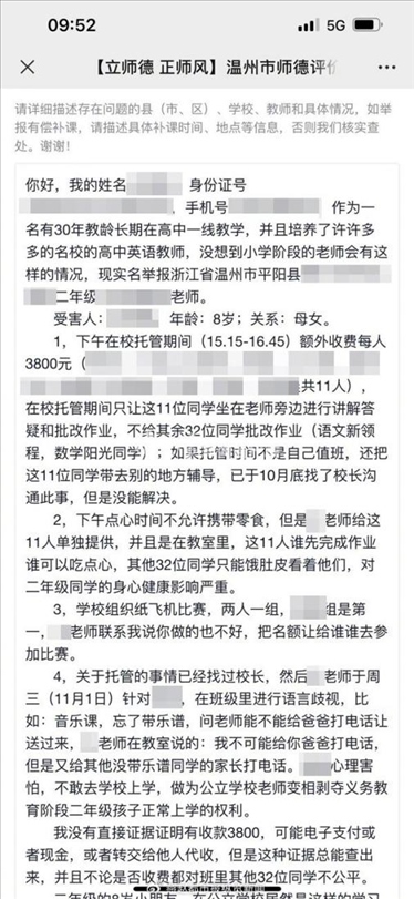·溫州一小學老師被舉報開展有償答疑,當?shù)亟逃郑撼闪0嗾{(diào)查取證。