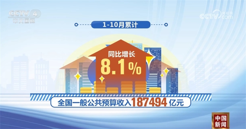 最新數(shù)據(jù)顯示,1—10月,全國(guó)一般公共預(yù)算收入187494億元,同比增長(zhǎng)8.1%。其中,稅收收入157841億元,同比增長(zhǎng)10.7%;非稅收入29653億元,同比下降3.8%。