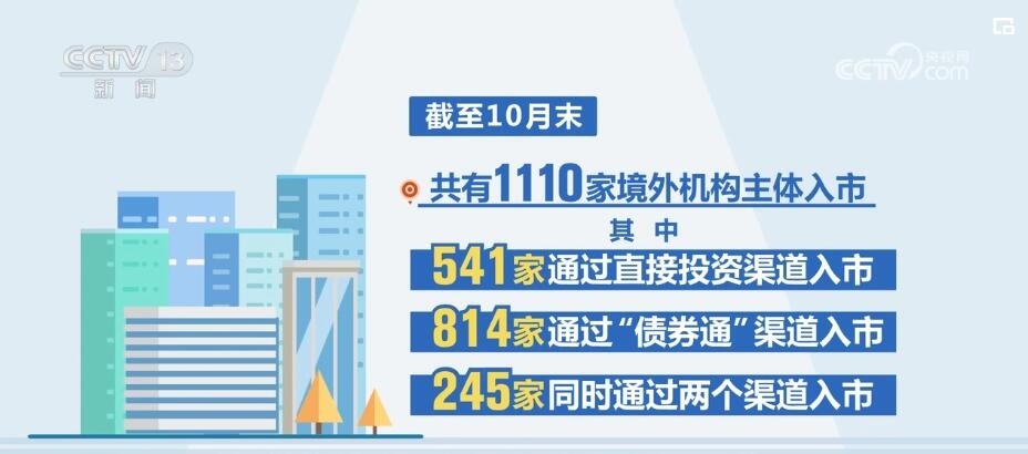 在資金凈流入的同時(shí),銀行間債券市場(chǎng)的境外機(jī)構(gòu)參與數(shù)量也在不斷增加,截至10月末,共有1110家境外機(jī)構(gòu)主體入市,其中541家通過直接投資渠道入市,814家通過“債券通”渠道入市,245家同時(shí)通過兩個(gè)渠道入市。