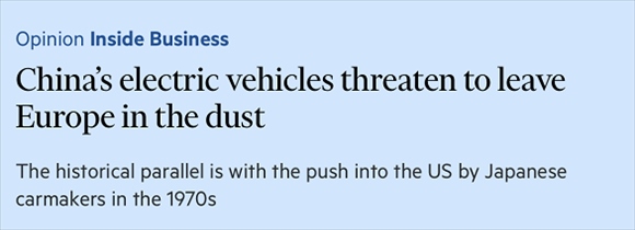 英國《金融時(shí)報(bào)》評(píng)價(jià),中國新能源汽車可能讓歐洲望塵莫及,其出口的增長速度比分析師此前預(yù)期的要快得多。