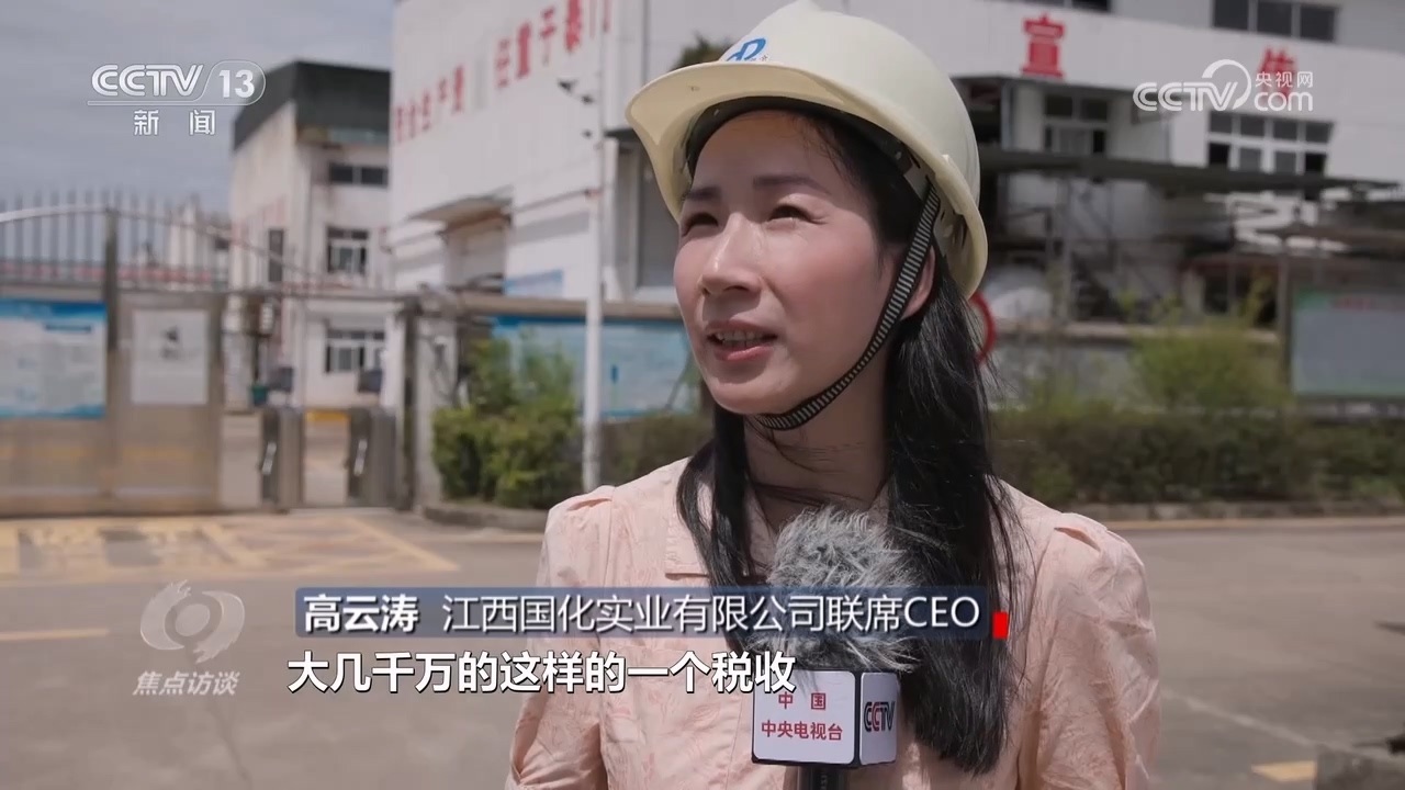 江西國化實業(yè)有限公司聯(lián)席CEO高云濤:“我們基本上每年要交大幾千萬的稅收,從稅收貢獻和經(jīng)濟貢獻上,對當(dāng)?shù)貋碚f肯定是比較核心的。”