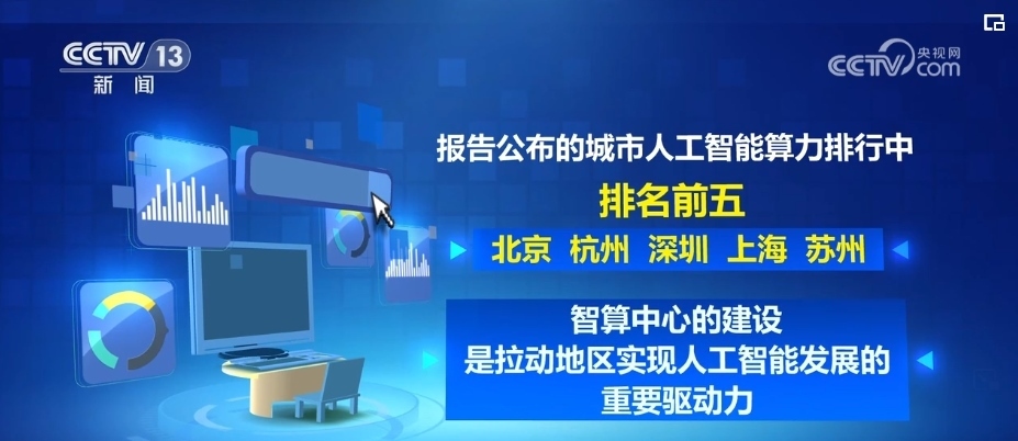 從地區(qū)分布看,《報告》公布的城市人工智能算力排行中,北京,杭州,深圳、上海、蘇州排名前五,智算中心的建設是拉動地區(qū)實現人工智能發(fā)展的重要驅動力。