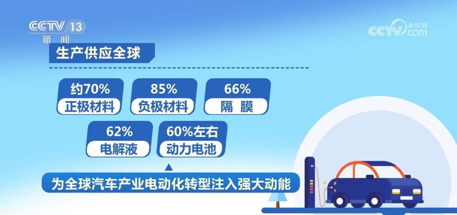 工業(yè)和信息化部表示,我國已建立了結(jié)構(gòu)完整、有機協(xié)同的新能源汽車產(chǎn)業(yè)鏈、供應(yīng)鏈體系,涵蓋基礎(chǔ)材料、零部件、整車、制造裝備等全鏈條,生產(chǎn)供應(yīng)了全球約70%的正極材料、85%的負(fù)極材料、66%的隔膜、62%的電解液以及60%左右的動力電池,為全球汽車產(chǎn)業(yè)電動化轉(zhuǎn)型注入了強大動能。