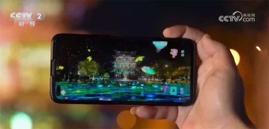 總臺(tái)記者 魏雨彤:我現(xiàn)在所在的商圈正是燈光節(jié)的核心區(qū)域,柔和的燈光線條點(diǎn)亮樓宇建筑的天際線,一路繁華一路景,各色燈光交相輝映,讓夜晚變得多姿多彩。