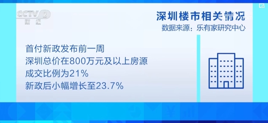 樂有家研究中心監(jiān)測(cè)數(shù)據(jù)顯示,首付新政發(fā)布前一周,深圳總價(jià)在800萬(wàn)元及以上房源的成交比例為21%,新政后這一比例小幅增長(zhǎng)至23.7%。