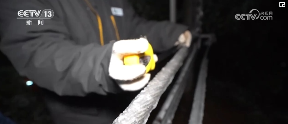根據現(xiàn)場檢測,現(xiàn)在導線上的覆冰已經超過了18毫米,融冰工作也正式開始。老廖告訴記者,他們采用的是導電加熱融冰的手段,通過對導線進行增加大電流,自動加熱,從而讓冰融化,但這一過程有時候要等很久。