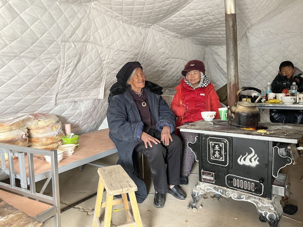 張郭家村是個(gè)小村,總共才350多人。地震發(fā)生后,全村絕大多數(shù)房屋受損,通村道路遭遇塌方,萬幸無人遇難。群眾積極自救互救,州縣鄉(xiāng)三級干部下沉,工作有序開展。19日晚至20日晨,部隊(duì)官兵徹夜為村上搭建起26頂帳篷。零下十幾度的夜晚,群眾再也不用在戶外燒柴取暖了。