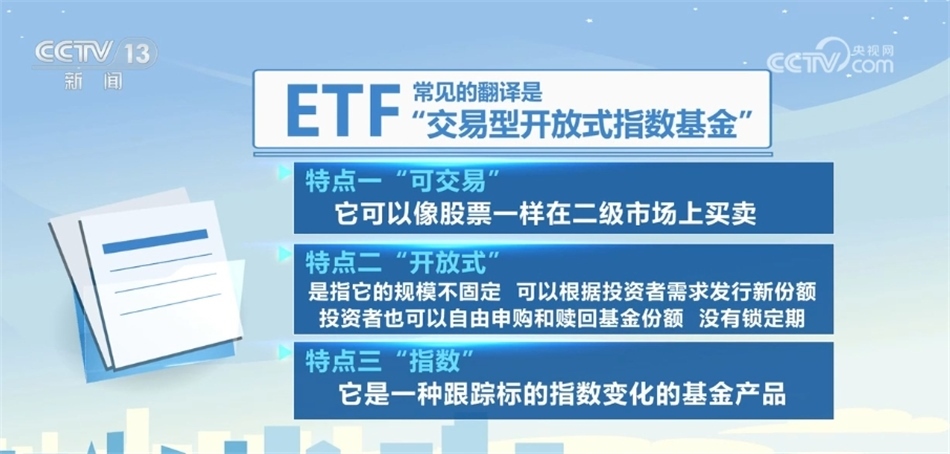 央視網(wǎng)消息:在2023年的資本市場(chǎng)上,有一類產(chǎn)品受到了投資者關(guān)注,從產(chǎn)品的種類到規(guī)模都出現(xiàn)明顯增長,這就是ETF,也就是我們常說的“交易型開放式指數(shù)基金”。那么什么是指數(shù)基金,ETF又具體包含哪些內(nèi)容呢?我們來了解一下。?