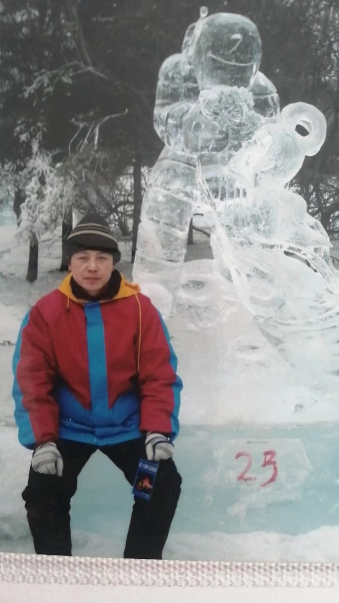 2003年,航天員楊利偉乘坐神舟五號一飛沖天,舉國歡騰的氣氛給臧洪洲帶來了靈感。不久后,在哈爾濱兆麟公園的一場冰雕比賽中,他設計完成了 “楊利偉身穿太空服飛天,嫦娥相迎”的航天主題的作品,這張照片,至今還存在他的手機里。