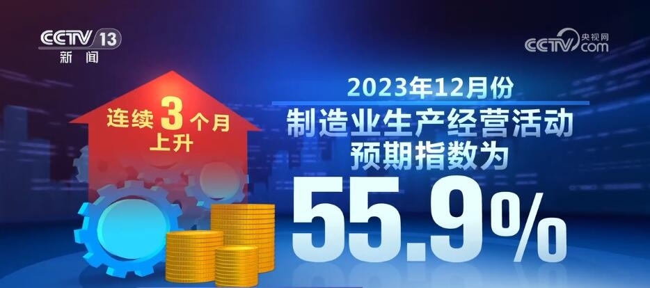 數(shù)據(jù)顯示,2023年12月份,制造業(yè)生產(chǎn)經(jīng)營活動(dòng)預(yù)期指數(shù)為55.9%,連續(xù)3個(gè)月上升,表明制造業(yè)企業(yè)對(duì)市場發(fā)展信心不斷增強(qiáng)。2023年12月份,高技術(shù)制造業(yè)和裝備制造業(yè)采購經(jīng)理指數(shù)分別為50.3%和50.2%,繼續(xù)保持?jǐn)U張。