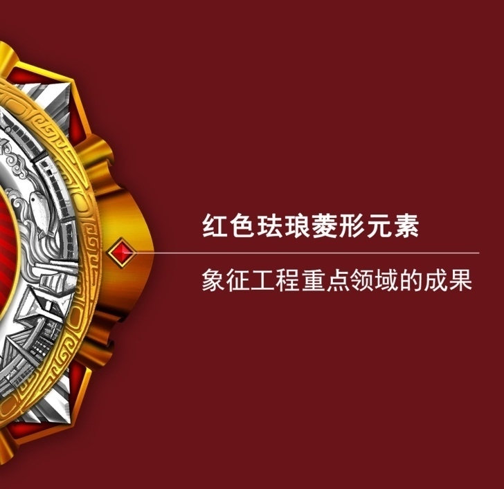獎章中的工程技術元素選取的是我國具有代表性的工程技術成果,如高速鐵路、5G、港珠澳大橋、雜交水稻等,象征我國科技創(chuàng)新事業(yè)發(fā)生的歷史性、整體性、格局性重大變化。