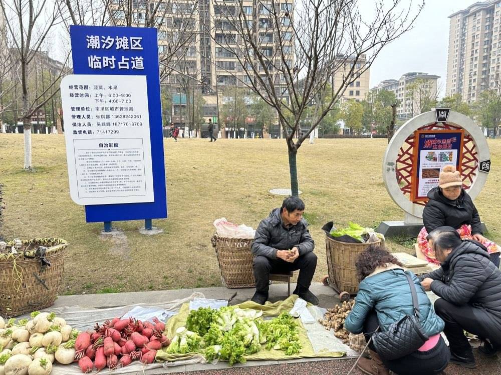 去年4月以來,南川區(qū)探索在小區(qū)周邊等區(qū)域設(shè)立“潮汐攤區(qū)”,目前已設(shè)置攤區(qū)31處、攤位2100余個(gè),引導(dǎo)瓜果農(nóng)、流動菜農(nóng)、經(jīng)營攤販免費(fèi)入位規(guī)范經(jīng)營,實(shí)行“攤位+攤主自治”模式,早中晚定時(shí)、規(guī)范定點(diǎn)、統(tǒng)一管理?!斑@讓居民在家門口就能吃上新鮮瓜果蔬菜,也有助于規(guī)范流動攤販管理。”南川區(qū)城市管理局局長姚濤說。