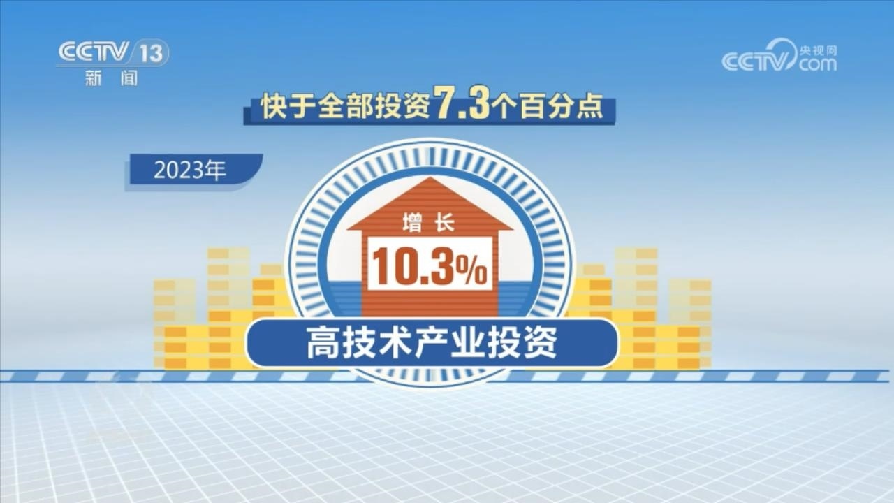 在投資領域,受房地產市場深度調整影響,2023年全年全國固定資產投資比上一年增長3%,而扣除房地產開發(fā)投資,民間投資增長9.2%。尤為值得注意的是,2023年高技術產業(yè)投資增長10.3%,快于全部投資7.3個百分點。其中,高技術制造業(yè)、高技術服務業(yè)投資分別增長9.9%、11.4%。
