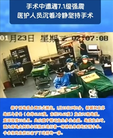 ·1月23日2時9分,阿克蘇地區(qū)烏什縣發(fā)生7.1級地震,地震發(fā)生時,浙大邵逸夫阿拉爾醫(yī)院正進行一場神經(jīng)外科的開顱手術(shù)。