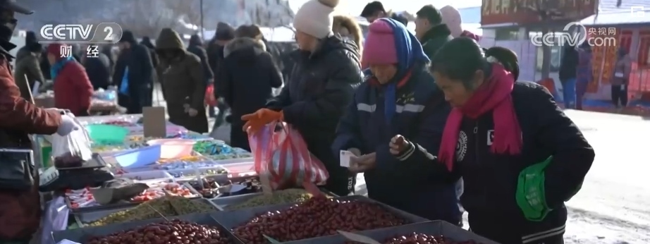在遼寧開原市松山鎮(zhèn)的這處大集,目光所及之處,吆喝聲、買賣聲此起彼伏。瓜果蔬菜、雞鴨魚肉、各種零食應(yīng)有盡有,無一不讓人感受到濃濃的年味。