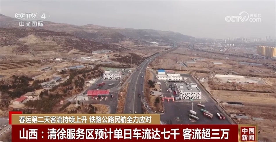 總臺記者 韓逾昊:我現(xiàn)在就是在G5京昆高速公路山西清徐服務(wù)區(qū)。這個服務(wù)區(qū)處在太原市南端,是從北京、太原前往運城、西安等地的必經(jīng)之地,平時每天的車流量也能達到4000多輛,預(yù)計春運期間將會達到7000輛左右,單日客流會超過30000萬人次。這個服務(wù)區(qū)算是山西客流量最高的高速公路服務(wù)區(qū)了。