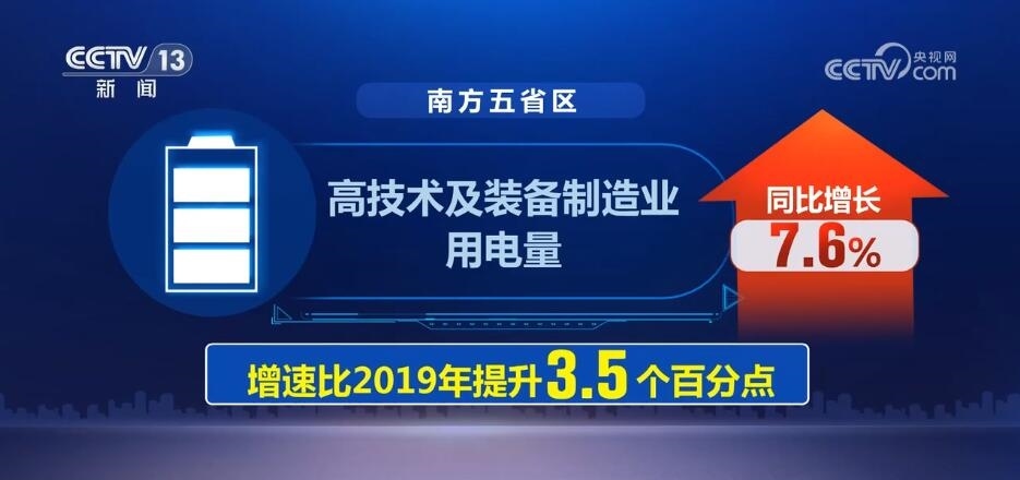 而在南方電網(wǎng)經(jīng)營區(qū)域內(nèi)的廣東、廣西等五省區(qū),高技術(shù)及裝備制造業(yè)用電量同比增長7.6%,增速比2019年提升3.5個(gè)百分點(diǎn),反映工業(yè)經(jīng)濟(jì)轉(zhuǎn)型升級(jí)態(tài)勢加快。