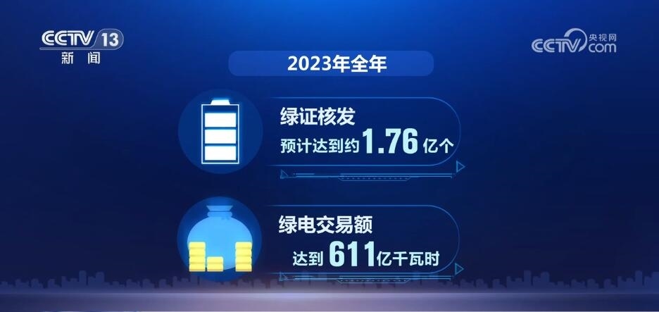全覆蓋,是2023年我國綠電消費(fèi)的一大關(guān)鍵詞。通過給已建檔立卡的可再生能源發(fā)電項(xiàng)目全部核發(fā)綠證,我國成為全球最大的綠證供應(yīng)市場。全年綠證核發(fā)預(yù)計(jì)達(dá)到約1.76億個(gè),綠電交易額達(dá)到611億千瓦時(shí),分別是2022年的7.8倍和10.5倍。