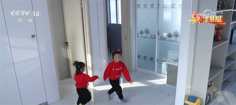 吉林省舒蘭市開原鎮(zhèn)新開村村民 曲玲:現(xiàn)在搬進這個新房子,屋子也亮堂了,采用的是電地?zé)?,你看剛才我們家小孩都不用穿拖鞋就這么跑(也不冷),還有室內(nèi)馬桶、冷熱水,比我們原來房子要好多了。