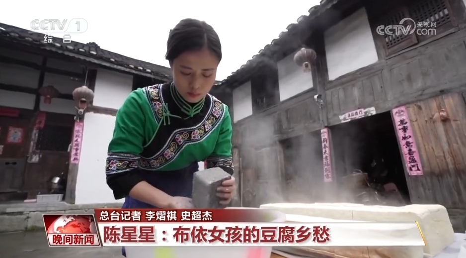 在貴州省貴陽市烏當(dāng)區(qū)偏坡布依族鄉(xiāng),陳星星正在錄制最新一期短視頻,通過布依族山歌推廣市級非遺豆制品制作技藝。在當(dāng)?shù)?,豆腐的做法多種多樣:搗碎、糅團、油炸、加入折耳根,豆腐圓子外焦里嫩。切薄塊、擺盤、佐以豬耳,鹵豆腐拼盤口味豐富。此外還有農(nóng)家三寶、絲絲相扣、木耳豆腐等菜式。2023年,碩士畢業(yè)的陳星星,沒有像鄉(xiāng)親們預(yù)期的那樣,考個城里體面的工作,而是戴上圍裙、挎上竹籃,回到群山環(huán)抱的家鄉(xiāng),做起了灰豆腐事業(yè)。