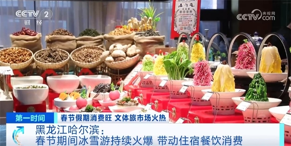 冰雪旅游的火爆也帶動了當(dāng)?shù)夭惋?、住宿等相關(guān)產(chǎn)業(yè)的消費增長,哈爾濱市商務(wù)局對部分重點行業(yè)調(diào)查數(shù)據(jù)顯示,2月10日至13日,春節(jié)哈爾濱市住宿行業(yè)營業(yè)額較去年同期增長22.90%,餐飲行業(yè)企業(yè)營業(yè)額較去年同期增長51.55%。