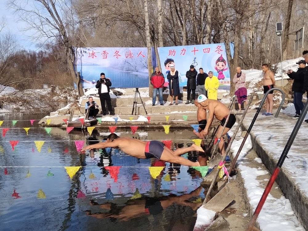內(nèi)蒙古呼倫貝爾市扎蘭屯市的冬泳愛好者在進(jìn)行冬泳。(溫秀華攝 新華社發(fā))
