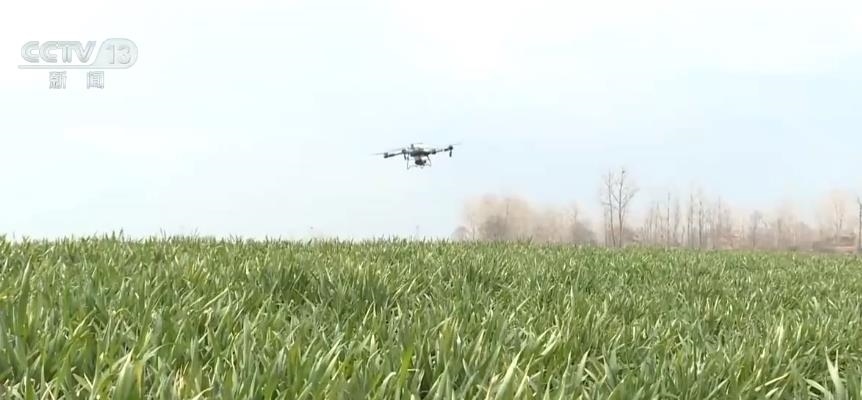 在河南安陽(yáng)市滑縣,農(nóng)戶們也在忙著春季田間管理。在滑縣留固鎮(zhèn)李周村,植保無(wú)人機(jī)正在向連片小麥噴施葉面肥,促進(jìn)小麥返青。