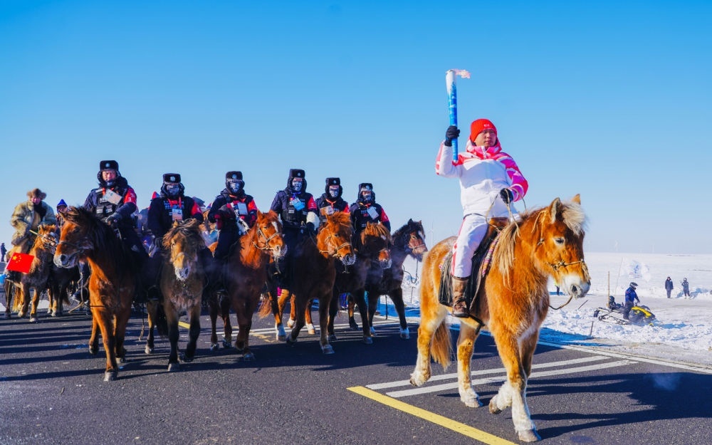 2024年2月3日,第十四屆全國(guó)冬季運(yùn)動(dòng)會(huì)火炬?zhèn)鬟f活動(dòng)在內(nèi)蒙古自治區(qū)呼倫貝爾市進(jìn)行,這是“十四冬”開幕前的最后一次火炬?zhèn)鬟f。新華社發(fā)(西日呼攝)