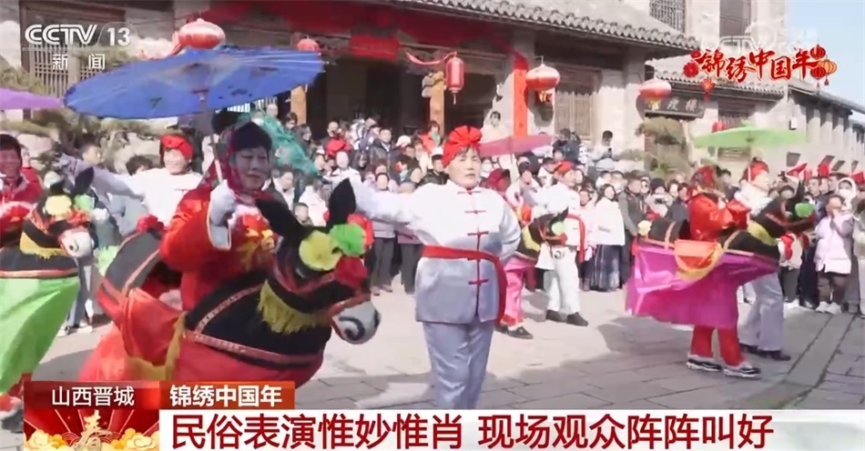 在山西晉城澤州縣大陽古鎮(zhèn)景區(qū),演員身著色彩鮮艷的古裝,伴著歡快熱鬧的小調(diào),自編自演的民俗表演輪番登場(chǎng),擔(dān)花籃、劃旱船等特色傳統(tǒng)民俗節(jié)目演繹得惟妙惟肖,贏得現(xiàn)場(chǎng)觀眾陣陣叫好。