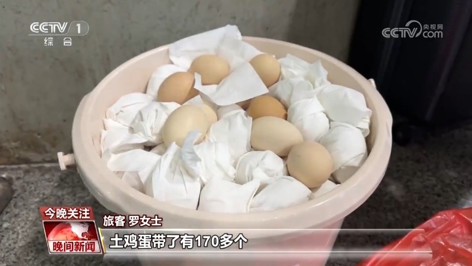 旅客 羅女士:土雞蛋帶了有170多個(gè),給兒媳婦還有女兒她們一個(gè)拿一點(diǎn),她們都在成都上班,老家?guī)н^來的土雞蛋味道不一樣,吃起來香嘛。