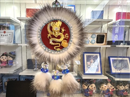 在“十四冬”的主媒體中心,多個(gè)玻璃展柜里的漢代陶罐、北魏陶俑、清代簪花木碗等文物,記錄并展現(xiàn)了呼倫貝爾民族交融史。此外,精美的太陽(yáng)花手工藝品、皮雕畫(huà)作、樺樹(shù)皮工藝品等非遺作品也吸引了許多人的目光。