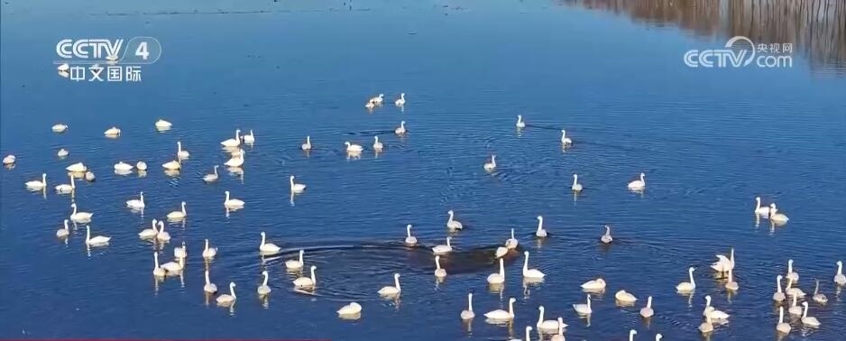 大批國家二級重點保護野生動物大天鵝在遷徙途中飛臨河北唐山市曹妃甸區(qū),它們在濕地、農田等水域覓食、嬉戲,悠閑地享受著這份春日美好。曹妃甸是東亞至澳大利西亞候鳥遷徙路線重要的停歇地,每年春秋兩季到此逗留的鳥類達數百萬只,為曹妃甸增添了自然生態(tài)之美。