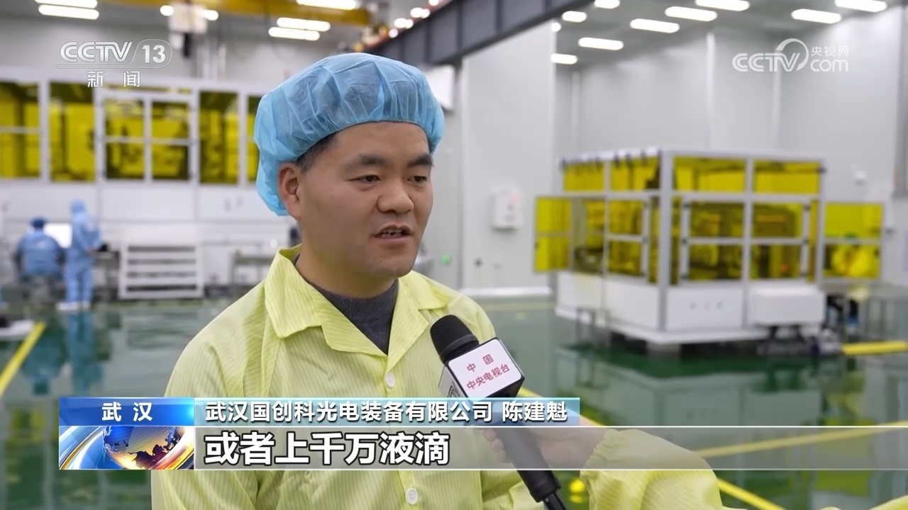 武漢國創(chuàng)科光電裝備有限公司陳建魁介紹,叫做噴墨打印的技術,像我們一個手機屏,一個屏幕上就需要幾百萬個像素點,對應的,如果打印的時候,可能會需要幾百萬或者上千萬液滴。