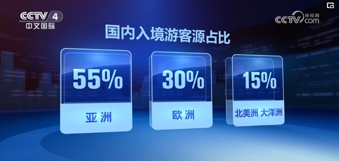 數(shù)據(jù)顯示,2024年以來,國內入境游整體訂單同比增長超三倍,亞洲仍是入境游最大客源地區(qū),占比在55%,其次是歐洲、北美洲和大洋洲,分別占比30%和15%。