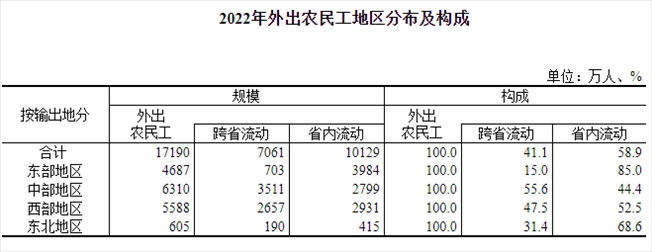 外出務(wù)工人員(農(nóng)民工)是我國流動(dòng)人口的主體之一。國家統(tǒng)計(jì)局發(fā)布的《2022年農(nóng)民工監(jiān)測調(diào)查報(bào)告》顯示,2022年全國農(nóng)民工總量2.96億人,外出農(nóng)民工1.72億人,其中跨省流動(dòng)7061萬人。