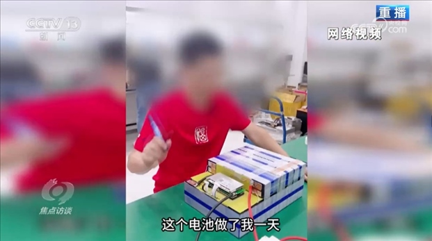 調(diào)查發(fā)現(xiàn),相同電量的原裝鋰電池通常要賣上千塊錢,而改裝電池便宜的只賣幾百塊,所以很多人會買改裝電池,但也埋下了事故隱患。改裝電池的電芯通常是從電動汽車淘汰下來的二手電芯,但是,黑作坊卻以舊充新、以次充好,安全防護更是嚴重缺失,根本達不到國家標準。但在短視頻平臺上,不少商家卻公開展示電池改裝過程以招攬生意。