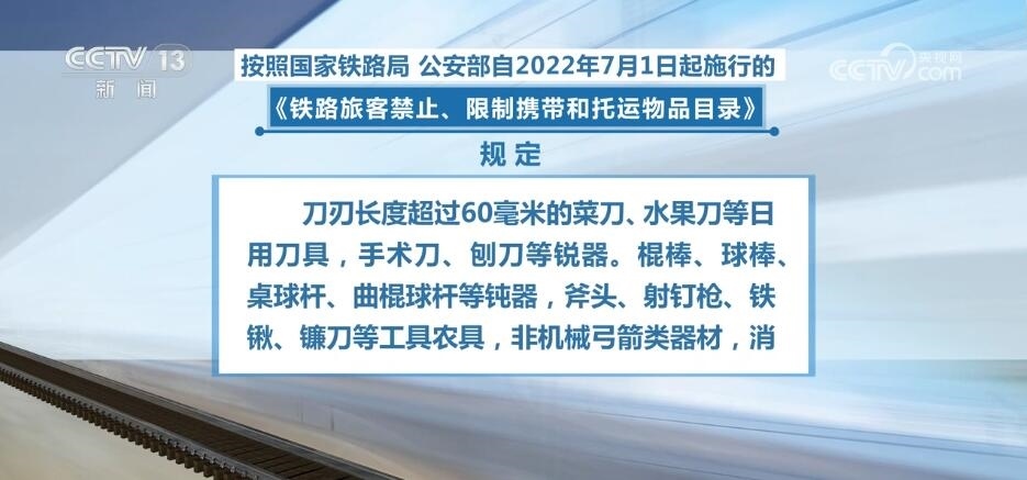 按照國(guó)家鐵路局、公安部自2022年7月1日起施行的《鐵路旅客禁止、限制攜帶和托運(yùn)物品目錄》的規(guī)定,有些物品不允許攜帶,有些物品有條件攜帶。