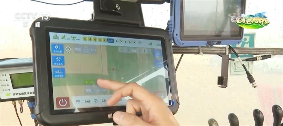 記者看到,播種機上有幾塊顯示屏,其中一塊顯示屏可以通過北斗導航對整個農機的駕駛速度進行有效控制,能夠保證播下去的種子株間距更加均勻,而且還能夠準確、不漏種。