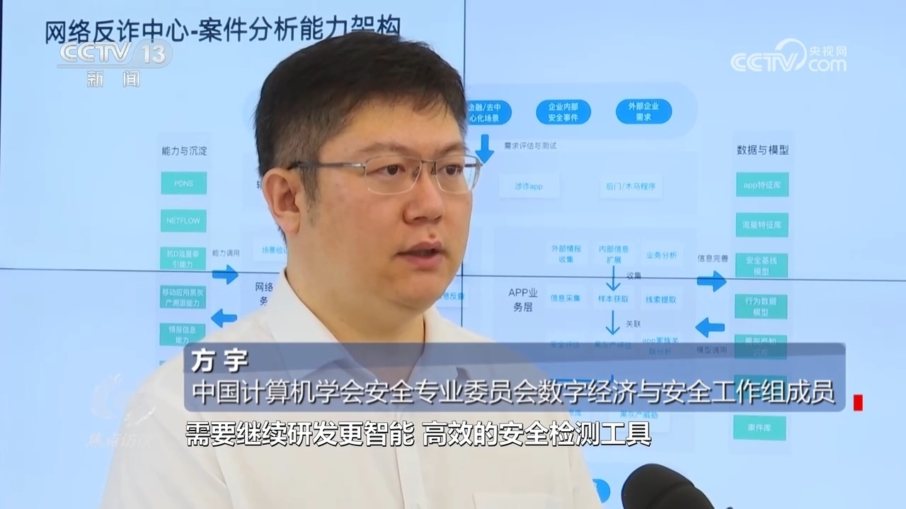 方宇:“下一步,針對涉詐APP的發(fā)現(xiàn),需要繼續(xù)研發(fā)更智能、高效的安全檢測工具,建立涉詐APP的黑名單數(shù)據(jù)庫。另外,結(jié)合一些新型、智能化的技術(shù)手段,通過對網(wǎng)絡(luò)流量分析,及時發(fā)現(xiàn)詐騙流量,并通過公安、網(wǎng)信、金融、市場監(jiān)管等部門進一步加強聯(lián)動、信息及時共享、及時進行阻斷,多措并舉,共同努力,形成合力,打擊涉詐APP?!?/p>