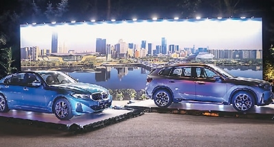 4月26日,遼寧省沈陽市與寶馬集團(tuán)深化戰(zhàn)略合作簽約儀式在沈陽舉行。寶馬集團(tuán)宣布,將繼續(xù)深化在華布局,增資200億元人民幣用于華晨寶馬大東工廠的大規(guī)模升級和技術(shù)創(chuàng)新。目前,沈陽已成為寶馬集團(tuán)全球最大的生產(chǎn)基地和最重要的新能源汽車中心之一。圖為簽約儀式現(xiàn)場展出的寶馬電動車產(chǎn)品。新華社記者 潘昱龍攝