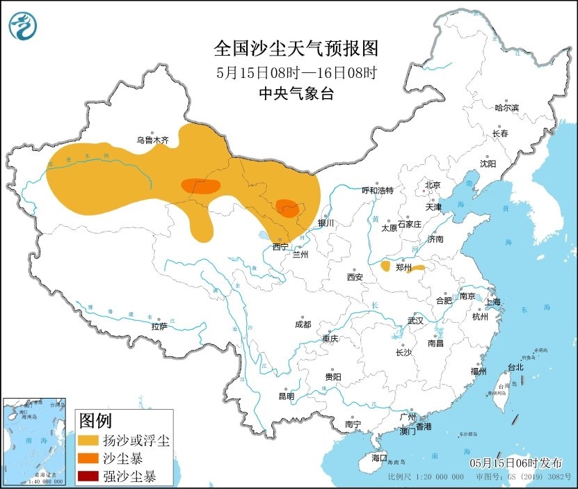 央視網(wǎng)消息:據(jù)中央氣象臺網(wǎng)站消息,預(yù)計,5月15日08時至16日08時,新疆南部和東部、甘肅西部、內(nèi)蒙古西部、青海北部以及河南中部等地有揚沙或浮塵天氣,其中新疆東部、甘肅西部、內(nèi)蒙古西部等地局地有沙塵暴,中央氣象臺5月15日06時繼續(xù)發(fā)布沙塵暴藍色預(yù)警。