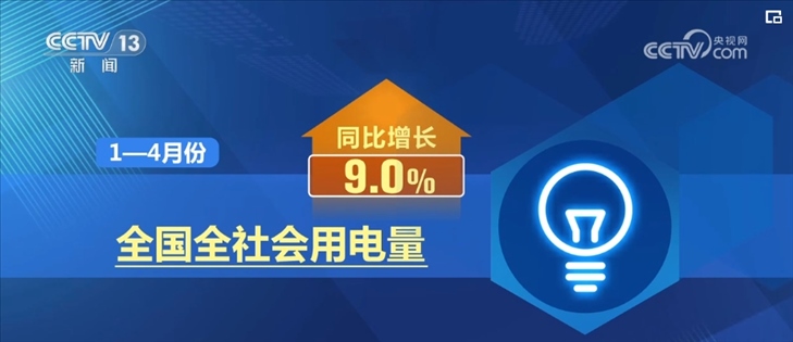 1至4月全社會(huì)用電量同比增長(zhǎng)9.0%
