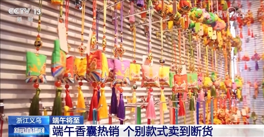 端午節(jié)人們還有佩戴香囊的習(xí)慣,來祈求平安健康。義烏市場上的香囊也同樣銷售火熱,個(gè)別款甚至已經(jīng)脫銷。